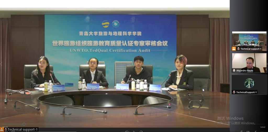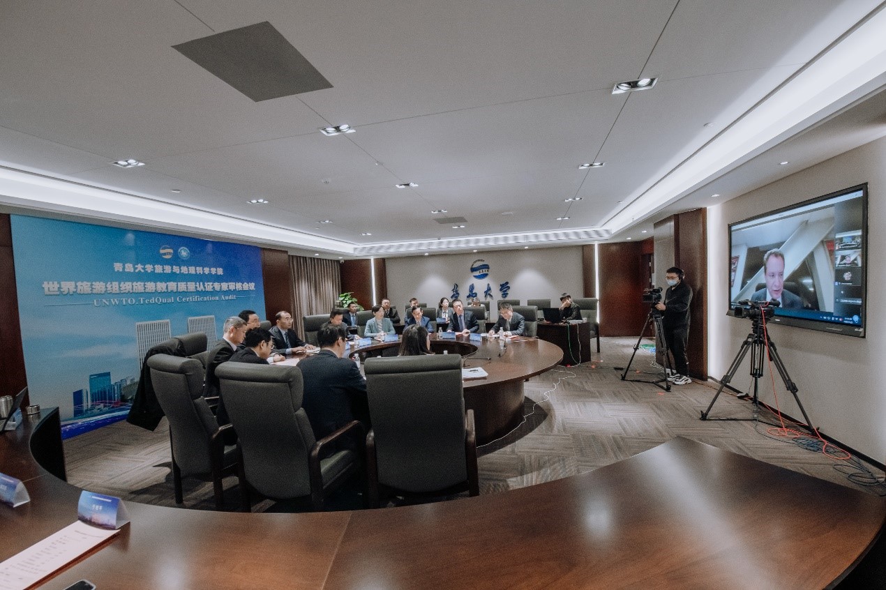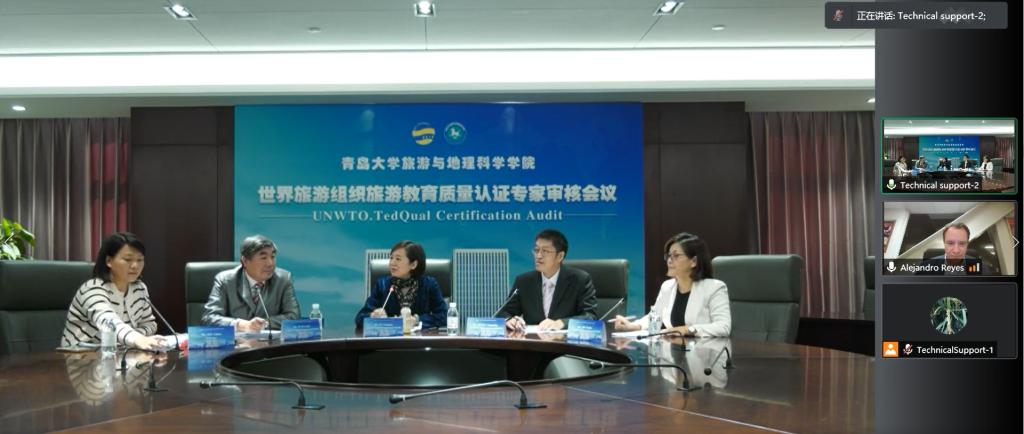 认证审核专家Dr.Reyes总结了6天与认证工作小组的报告与支撑材料论证,云游览校史馆、学生事务大厅、“非遗在青大”文化空间、青大印象休闲茶餐厅、旅游目的地管理实验室等办学设施,线上访谈学校职能部门、教师、学生、校友、公共部门和私营部门代表等审核情况。他认为,结合自评报告、支撑材料论证以及访谈情况,我校旅游管理专业和酒店管理专业的认证准备工作扎实、办学目标明确、办学特色鲜明、办学条件与设施优越、社会声誉和认可度较高,同时也指出了两个专业的不足,并提出了改进的建议。他表示,根据认证流程,接下来将尽快撰写形成一份审核报告提交联合国世界旅游组织旅游教育质量认证委员会审议,最终的认证结果大约在四至六个月后由认证委员会作出。