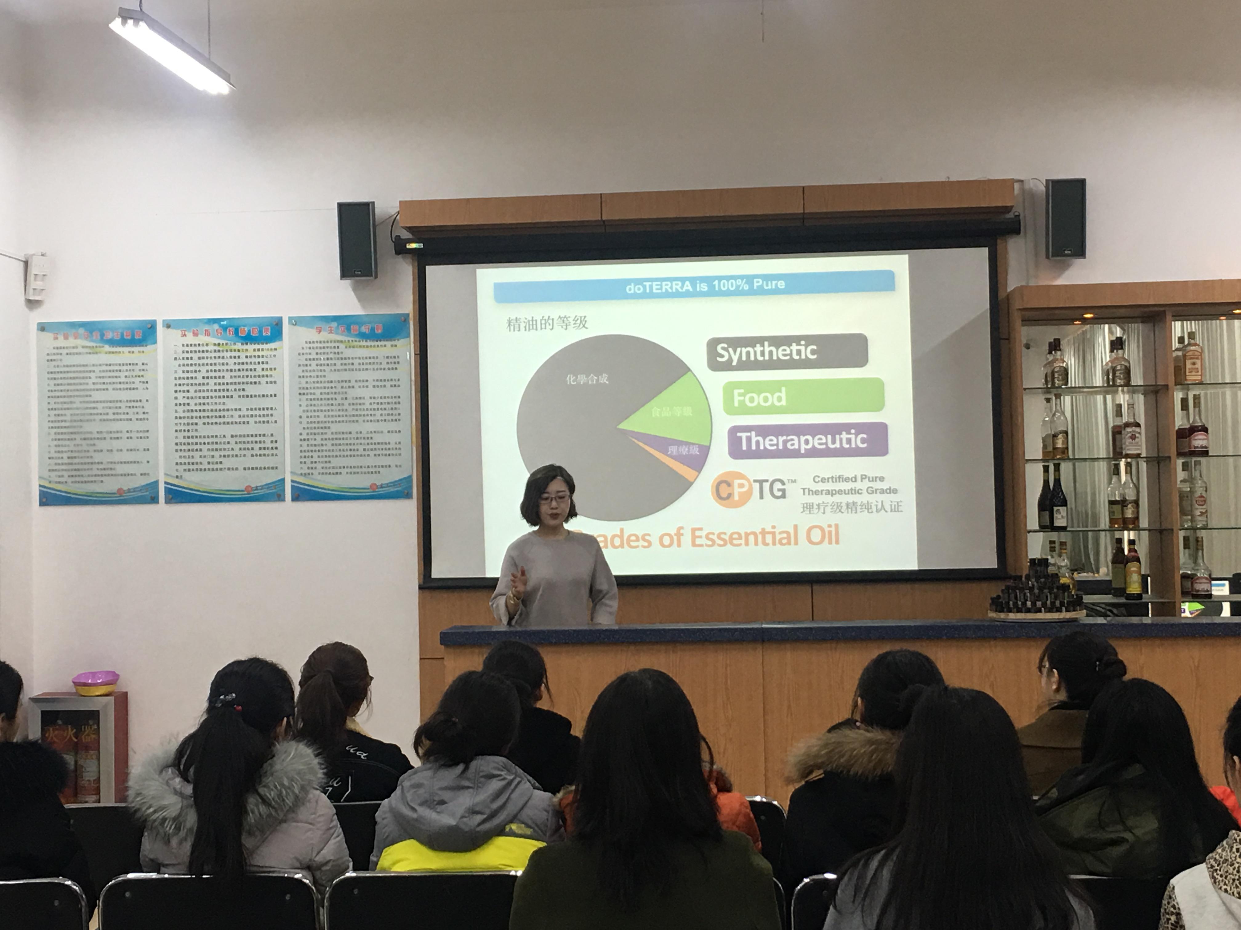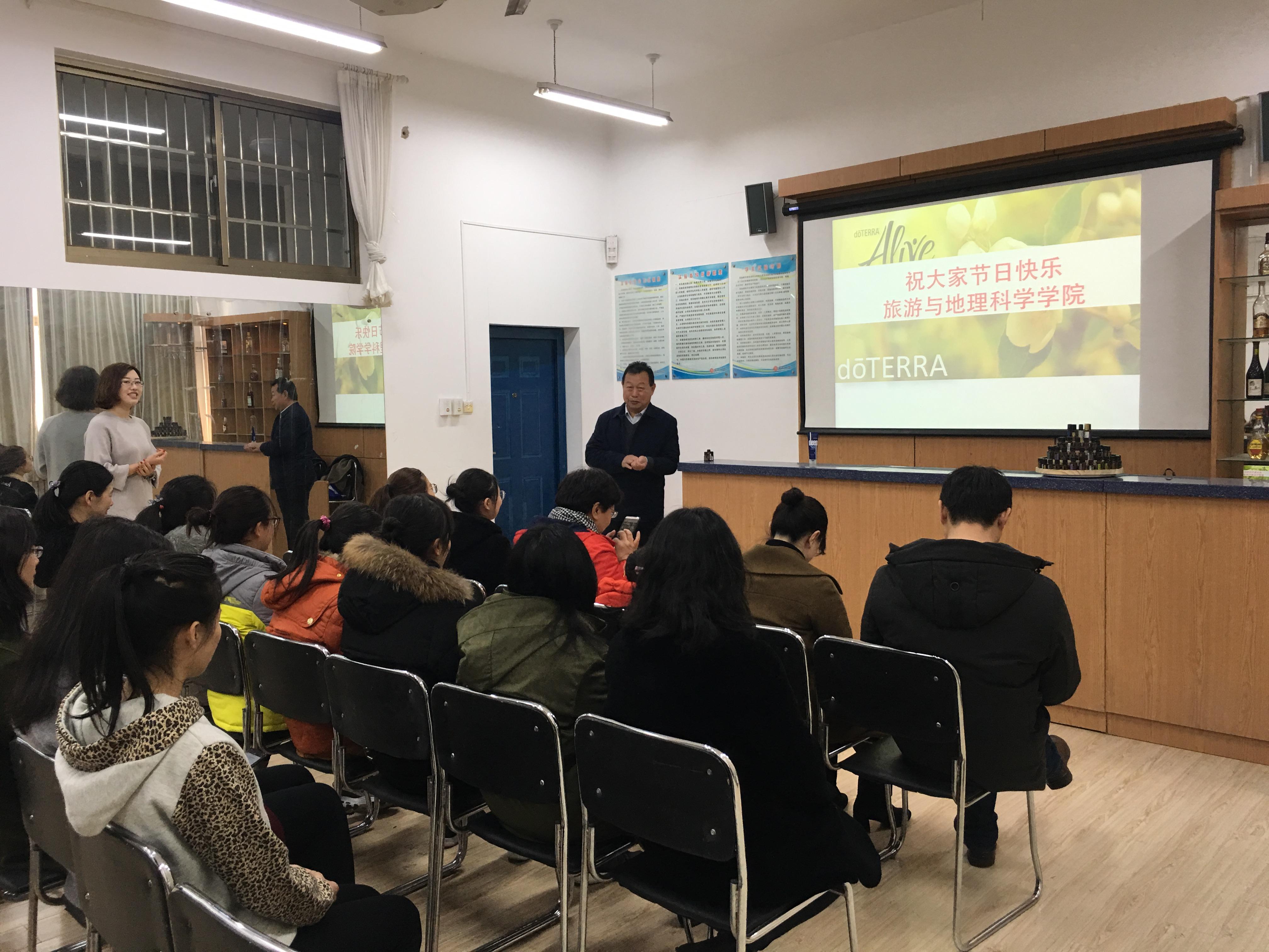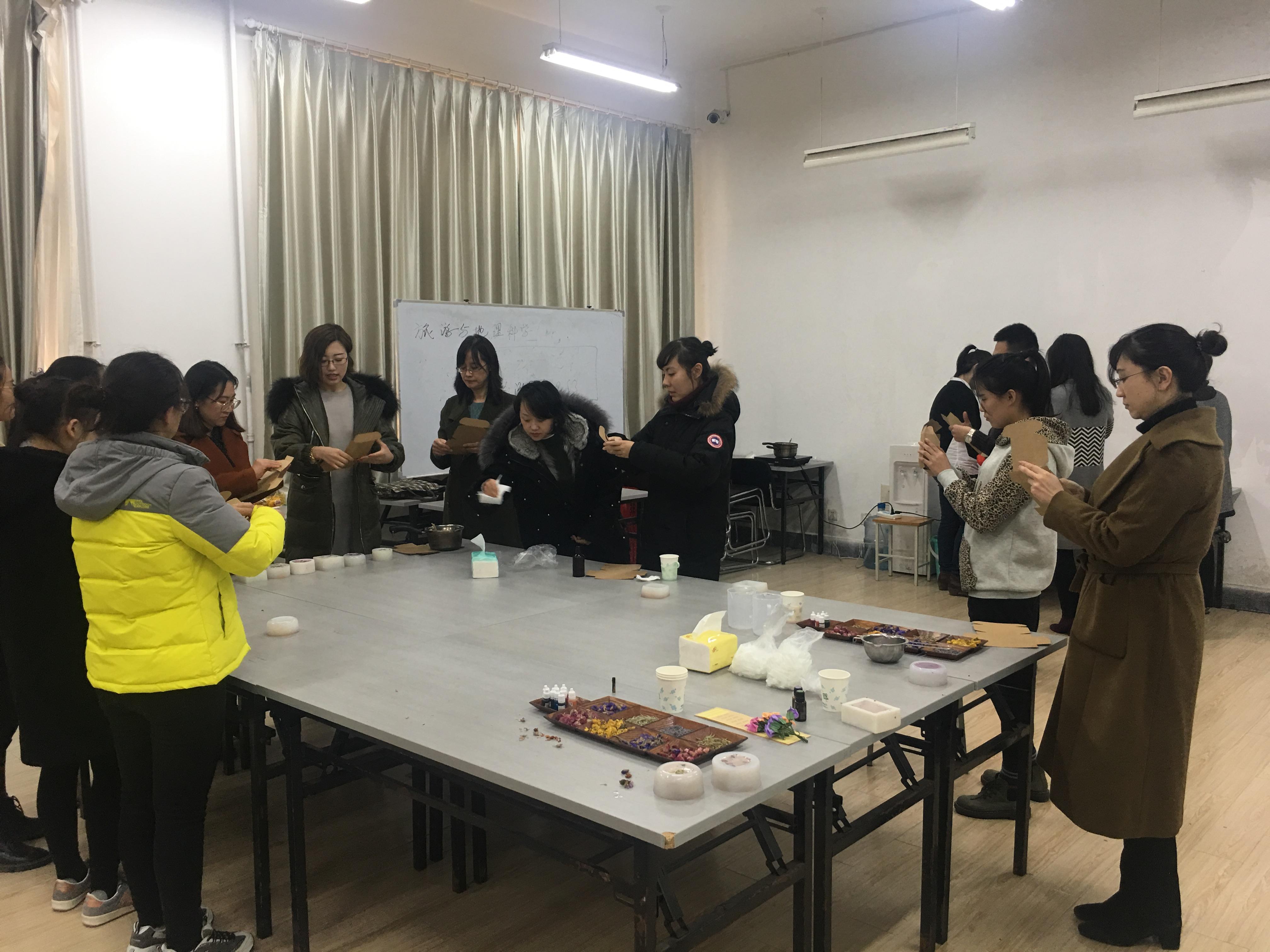 阳春三月,万物更新。39日下午,为庆祝“三八”国际妇女节,丰富女职工业余文化生活,旅游与地理科学学院在院酒店管理实验室组织开展了题为《植物芳香课堂》精油知识讲座。讲座开始刘善东书记和耿庆汇院长代表学院为全体女老师送上了节日的祝福,接下来由中国高级精油疗法康复理疗师文莉老师从植物疗愈功效、精油品质辨别、精油功效等方面进行了详细讲解,并与大家现场互动,女老师们在精油温馨芬芳的氛围里收获了精油与人体健康的相关知识。随后,在文老师的指导带领下,老师们学习了手工精油皂的制作流程和技巧,并根据自身体质,动手制作了一块属于自己的专属精油皂,大家在欢声笑语中体验了亲自创作的成就感。