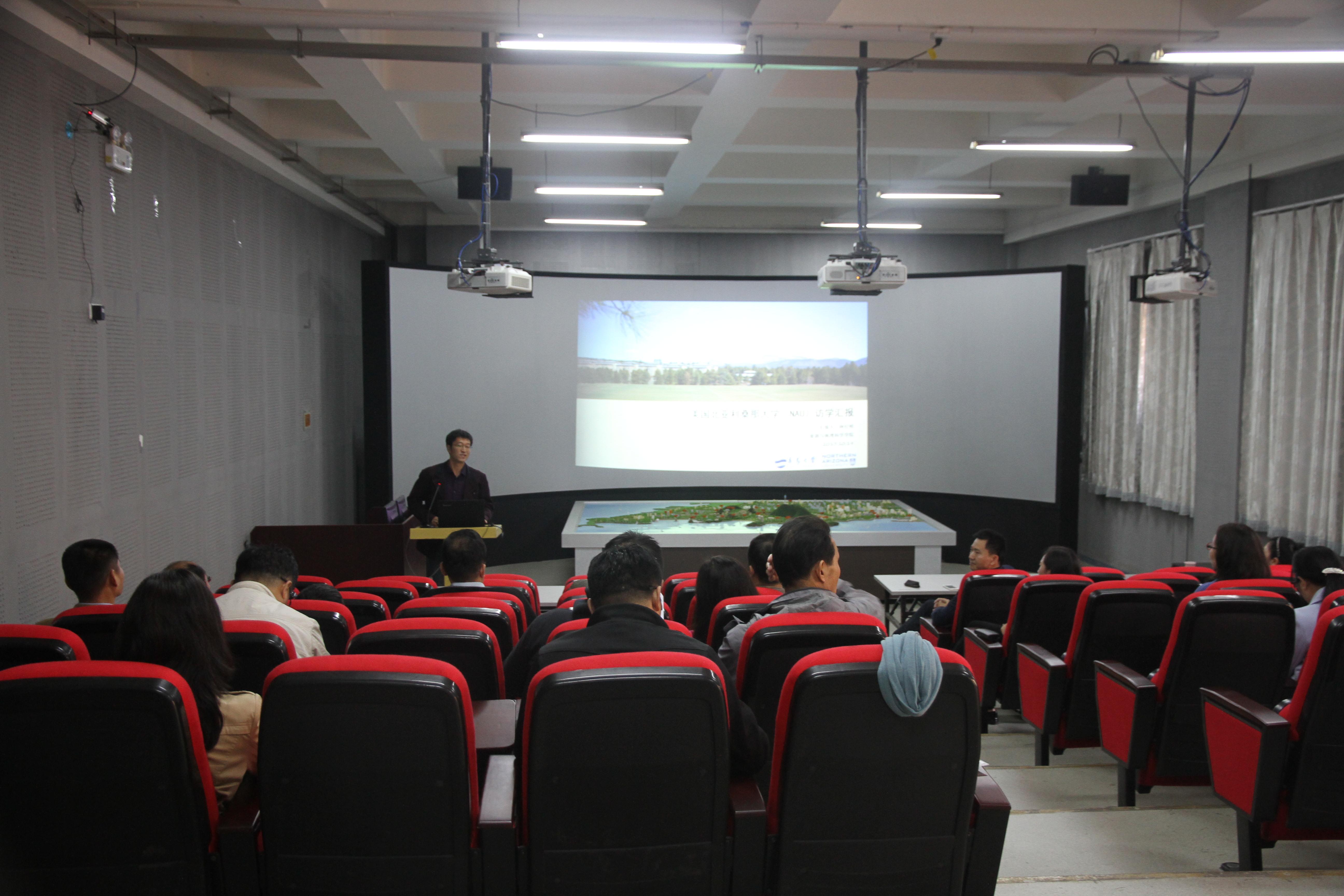 于岩平就其在美国俄克拉荷马州立大学的研究、学习和体验与大家进行了分享,特别是对美国接待业组织与消费者行为研究做了阐述,提到了此次访学的收获、感悟,并为今后访学的老师提供了中肯的建议。钟行明分享了他在美国北亚利桑那大学的教学观察和研究体会,并结合专业考察,对美国旅游业进行思索,对即将访学教师提供帮助。两位老师从不同的视角阐述了国外交流访问期间的所见所闻所感和访学交流对自己将来教学、学术生涯的帮助,对即将出行访学和在校的老师有极强的借鉴意义。