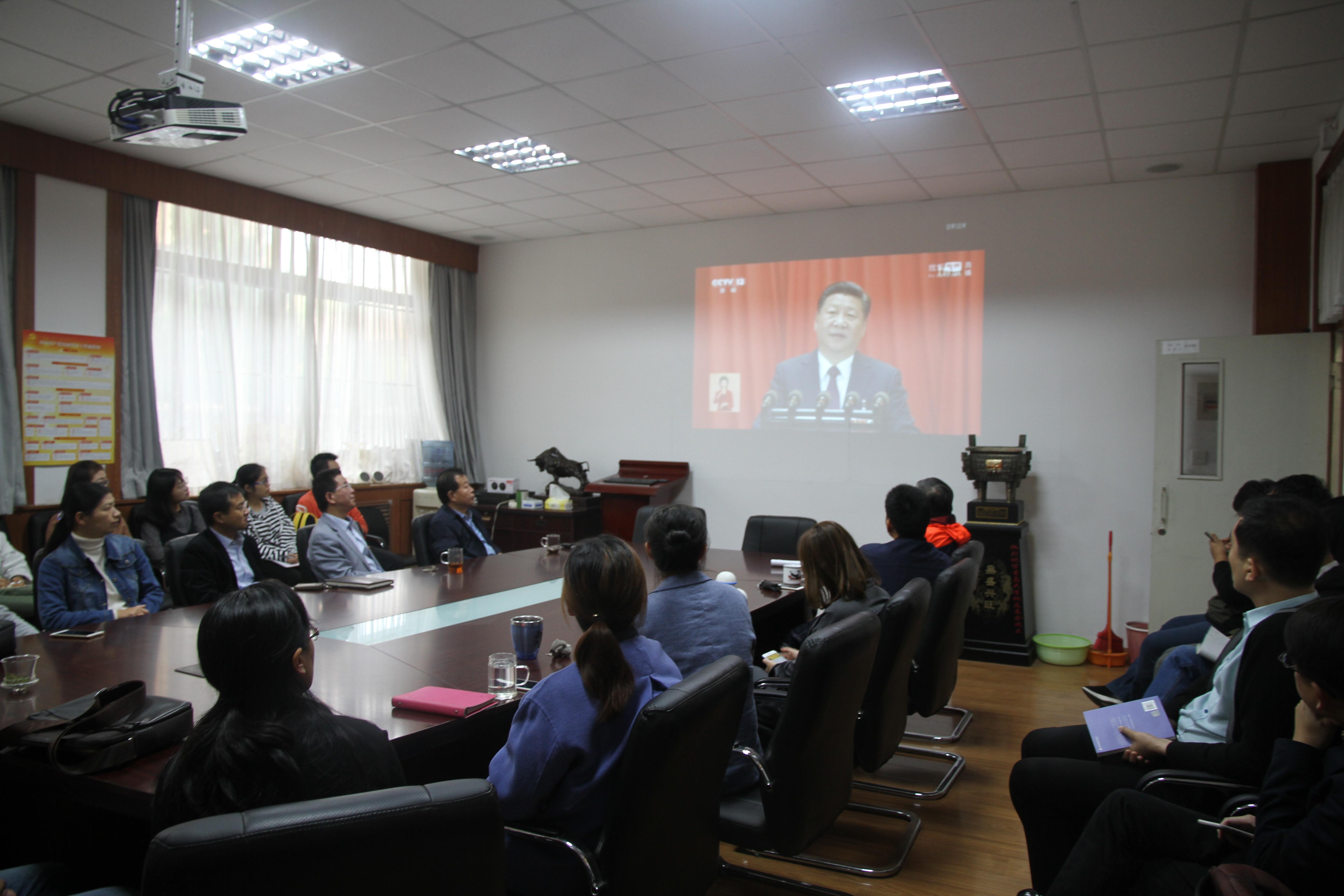 2017年10月18日上午9时,举世瞩目的中国共产党第十九次全国代表大会在北京人民大会堂隆重开幕,旅游与地理科学学院党委组织师生党员、入党积极分子在学院会议室收看开幕式盛况,认真聆听习近平总书记代表十八届中央委员会所作的工作报告。