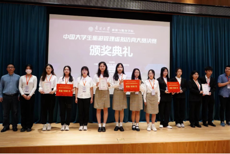 2023年5月25日—28日,由中国旅游协会旅游教育分会和南开大学旅游与服务学院联合主办,天津新旅科技有限公司承办的首届中国大学生旅游管理虚拟仿真大赛决赛在南开大学旅游与服务学院成功举办。由我院寇敏、刘鸣老师指导,2021级旅游管理专业余敏芳、钏晓梅、刘婷、邓涵菲组成的参赛队伍,经过预赛、复赛、决赛三轮的激烈角逐,最终获得全国二等奖的优异成绩,寇敏老师获优秀指导教师奖。