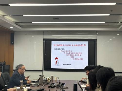 4位老师分别做了《初中地理大单元项目式教学初探—以“山水林田湖草-我们是生命共同体”等教学为例》《项目式学习在初中地理教学中的应用》《基于新课标下高中地理大单元教学设计的思考》《初中地理教学中运用大单元教学的思考》的线上线下同步讲座。2023级学科教学·地理专业全日制、非全日制研究生,2022级、2023级地理科学专业部分本科生共20余人参加讲座学习,邱秀玉青岛地理名师工作室的王芳等3位老师参加了讲座,学科教学•地理专业硕士研究生指导教师张绪良、徐雪参加了本次讲座。讲座以线上线下同步的方式进行。