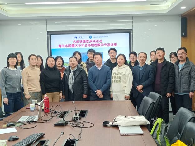 为培养学科教学•地理专业硕士研究生地理教学技能,引导研究生充分了解当前中学对地理教师的专业素养要求、中学地理教学研究的最新动态,2024年1月6日旅游与地理科学学院邀请青岛市即墨区普东中学正高级教师邱秀玉、青岛市即墨区教育教学发展研究中心初中地理教研员吕建秋、青岛市即墨区第一高级中学高级教师郭雪平、胶州市振华中学高级教师苑文春4位青岛市中学地理学科教学名师,举办了2024年第1期名师进课堂——青岛地理名师专家讲座。