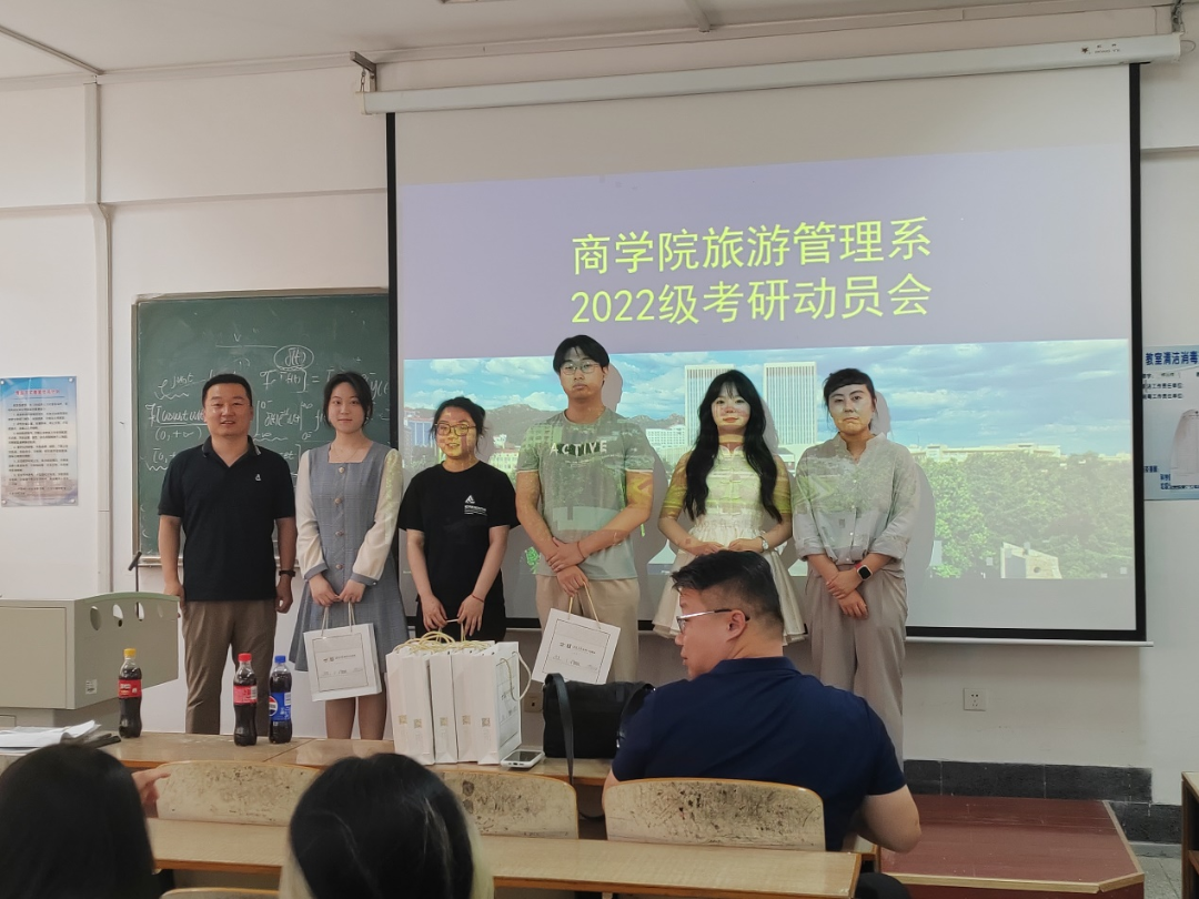 韩煜老师为大家介绍了考研优秀标兵王安麒、韩蕊、丁凯璐和荆锐,并为四位同学颁发了考研标兵奖品。四位考研标兵分别从推免保研、本专业考研、跨专业考研、境外升学等视角,分享了院校专业选择、考研策略、心态调节、备考经历等经验,鼓励学弟学妹们保持积极心态和努力向上的精神,力争取得考研升学的好成绩。