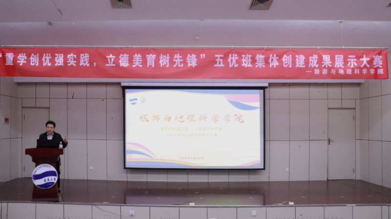 为落实习近平总书记在全国教育大会上“培养德智体美劳全面发展的社会主义建设者和接班人”的重要讲话精神,旅地学院围绕“德智体美劳”全面发展积极行动起来,开展了“五优班集体”主题创建教育活动。4月27日上午,旅游与地理科学学院于taptap点点体育浮山校区图书馆报告厅举办“重学创优强实践,立德美育树先锋”——五优班集体创建成果展示大赛。各班级按赛前抽签顺序依次展示了五优班集体的创建成果,总结过去,展望未来。