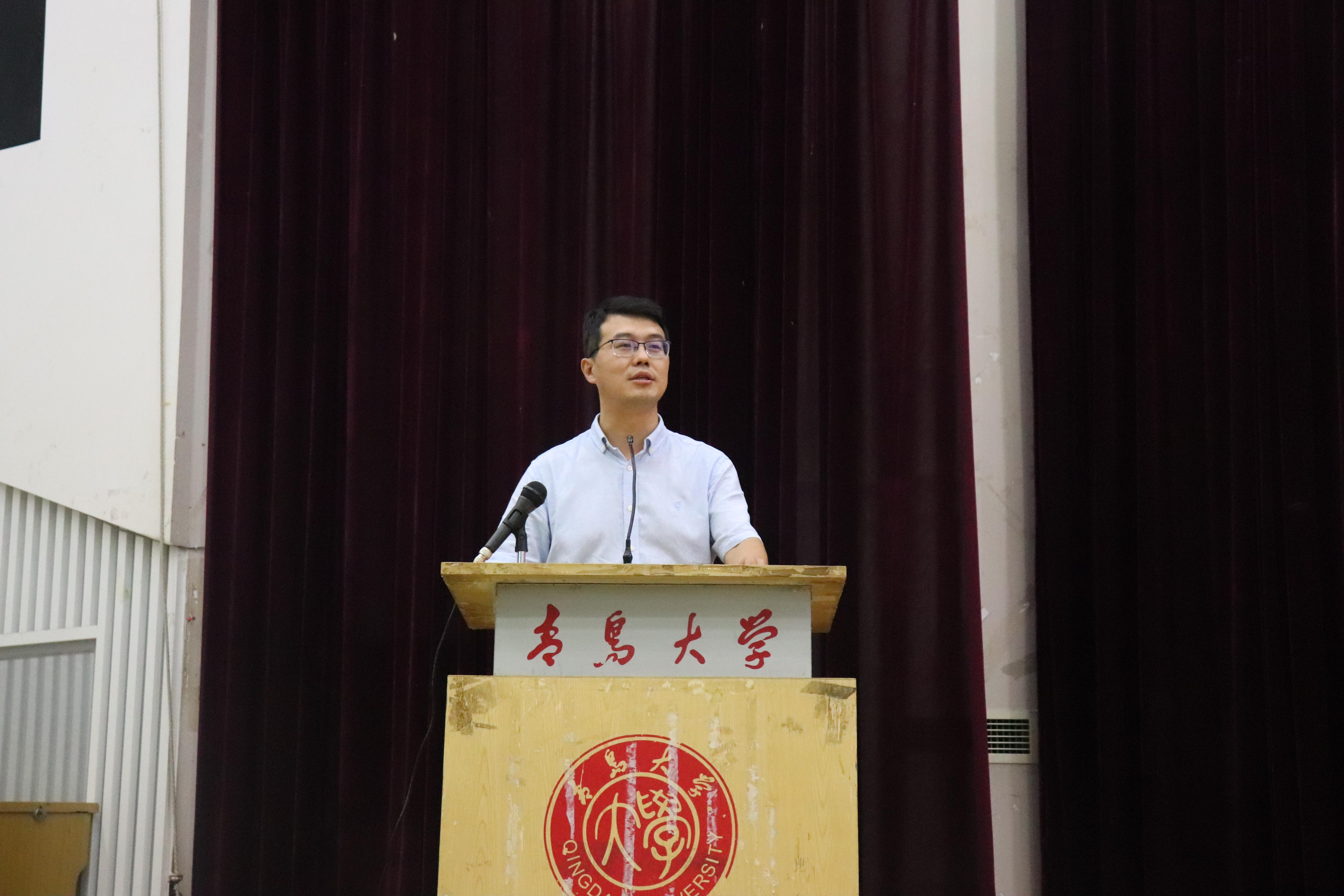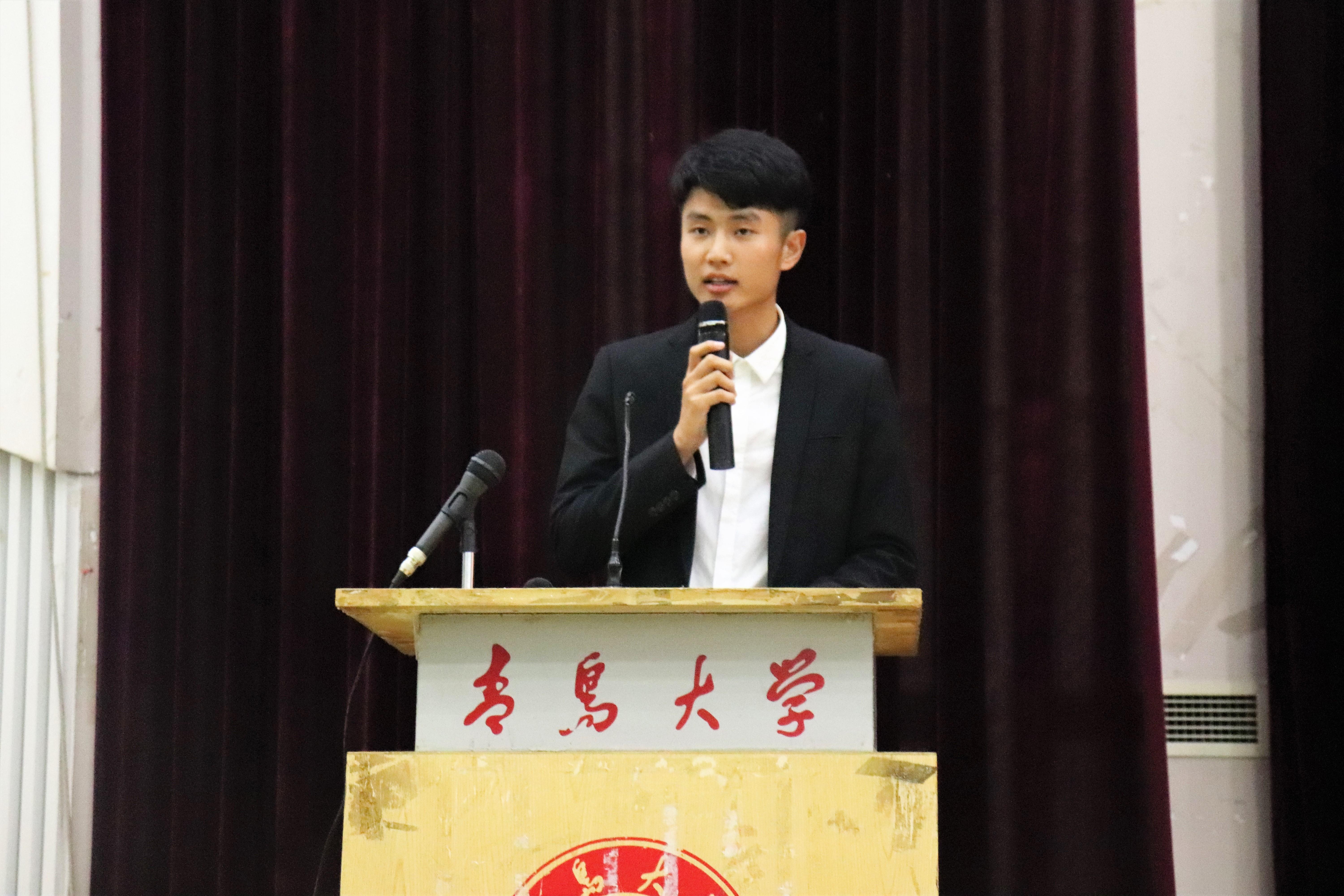 我学院副院长耿庆汇向同学们介绍我院全体教职工任职情况;优秀教师代表王伟以自身求学经历向同学们传授经验,并表达了对同学们大学学有所成的期望; 2016级学生代表王昱凯同学与新生分享了自身学习及生活经验,建议同学们要尽快融入新集体、要多读书多学习、学会合理调配时间、找到自己的梦想; 2018级新生代表臧璇表达了对学校、老师和学长学姐的感谢以及对自己及同学们的期盼。最后,由新生代表臧璇带领新生进行入学宣誓。