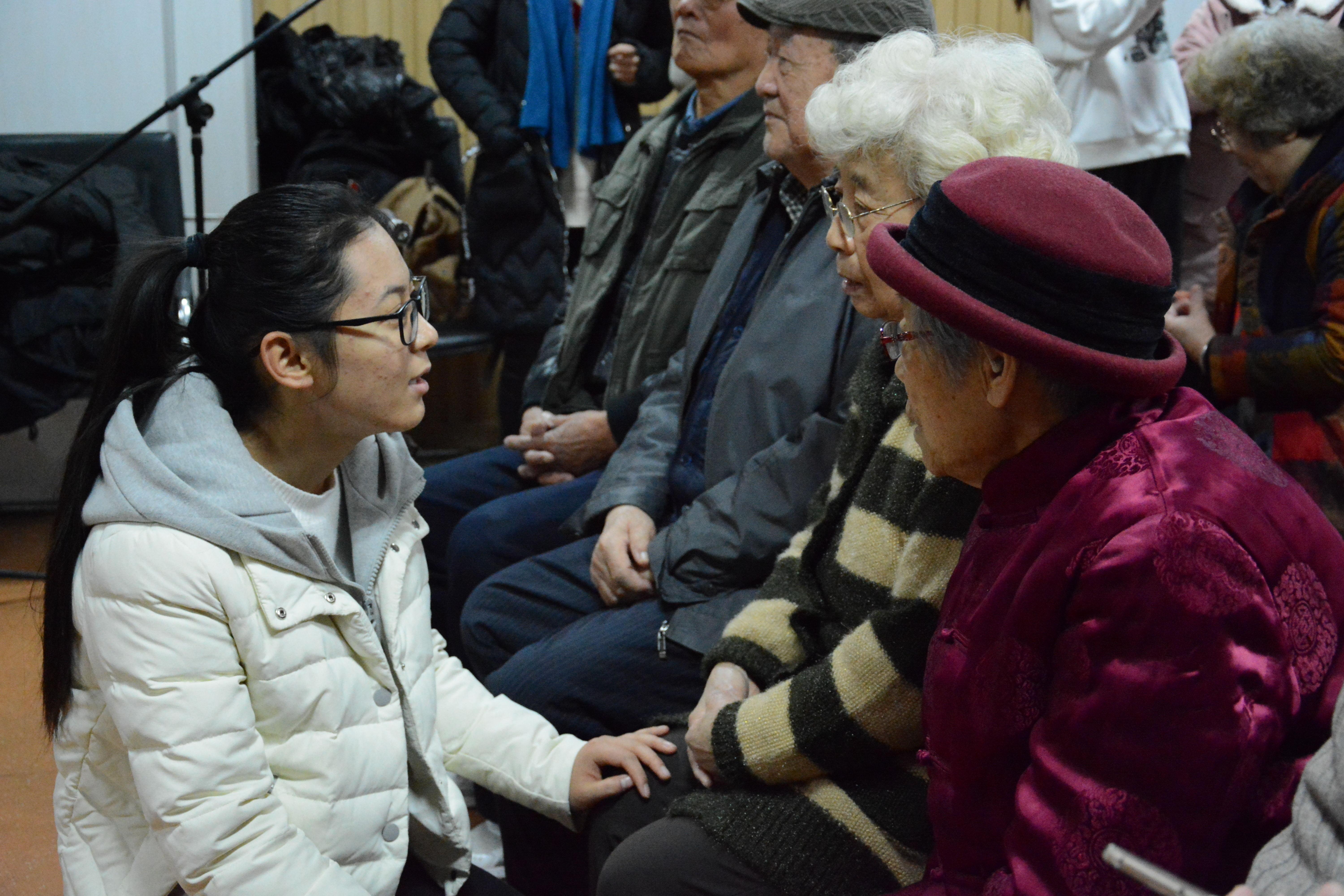 上午九点三十,活动正式开始。青春洋溢的开场舞《咖喱咖喱》拉开本次活动演出的序幕,随后相声表演《满腹经纶》、舞蹈《游击队之舞》、小品《年轻的心》赢得爷爷奶奶的阵阵掌声,精彩的二胡独奏《战马奔腾》和舞蹈表演《大鱼》带领爷爷奶奶们重温年轻时的经典。爷爷奶奶们也不甘落后,为前去的同学们一展歌喉。表演结束后,同学们给老人送上精美礼品。
