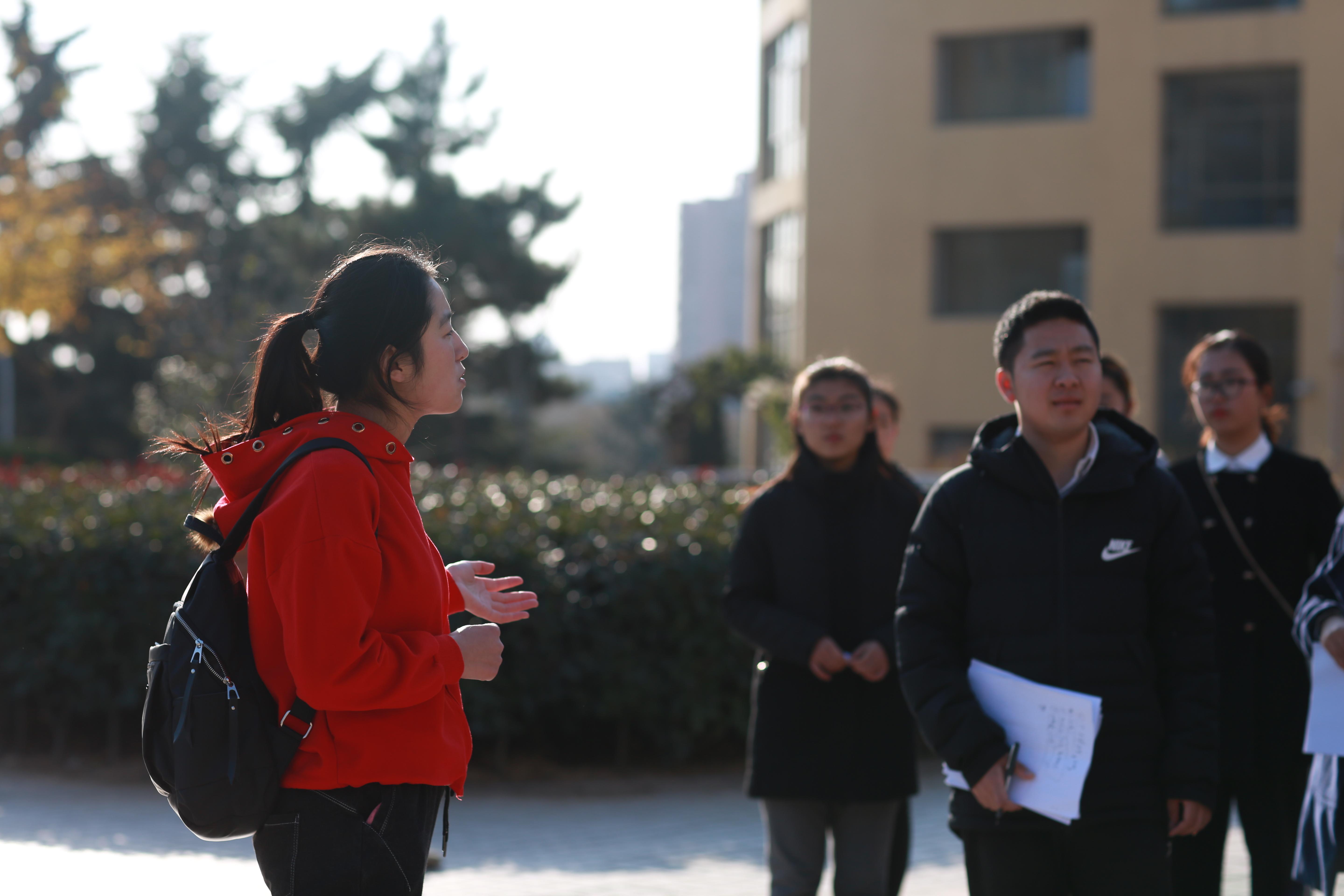 此次校史讲解队复试采用实地讲解的形式,由工作人员提前向参加复试的同学发放了国际学术交流中心、图书馆等6个标志性建筑的讲解内容。选手们通过抽签,从中选取2个建筑进行讲解,评委全程跟随并从复试人员中选拔出7人加入校史讲解队。