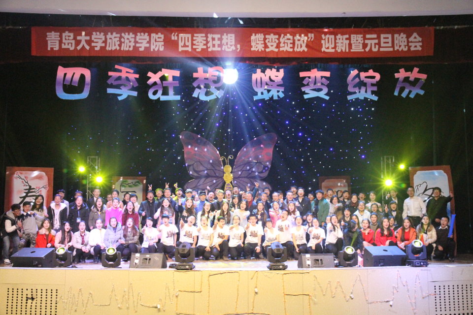 晚会开场前, 院长马波发表新年致辞,以“boys and girls, be ambitious!”寄语全体学生。并宣布:原地理系和中外合作办学之旅游管理专业并入原旅游学院,成立“旅游与地理科学学院”,并在中心校区办公,青大旅游3.0时代正式开启!