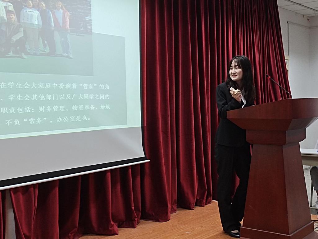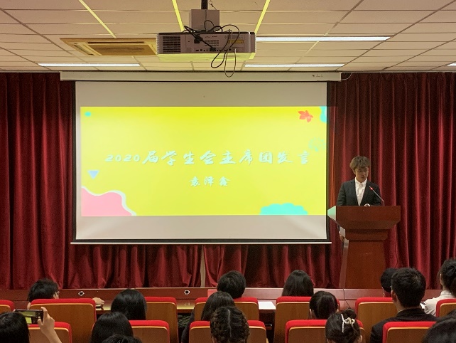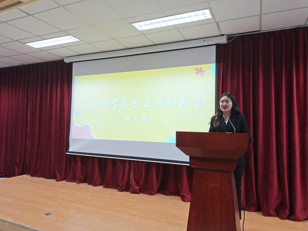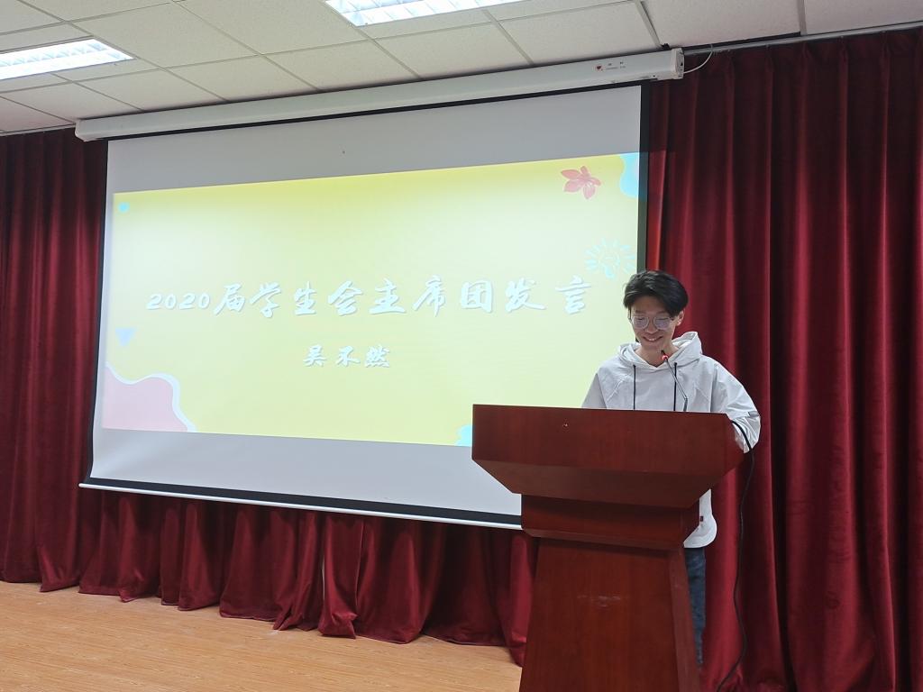 主席团成员鞠东辰、付佳宜、袁泽鑫、吴不然、王丽华分别对本年度学生会的工作情况做出总结发言,希望学生会成员们在按时完成任务的同时能有所改善,并对每位成员的理解与支持以及学院老师们的指导与陪伴表示感谢,主席团希望大家直面困难,克服恐惧,不要被生活磨平棱角;不忘初心,保持热爱,并祝愿旅地学院学生会的每位成员在任职期间都能有所收获。
