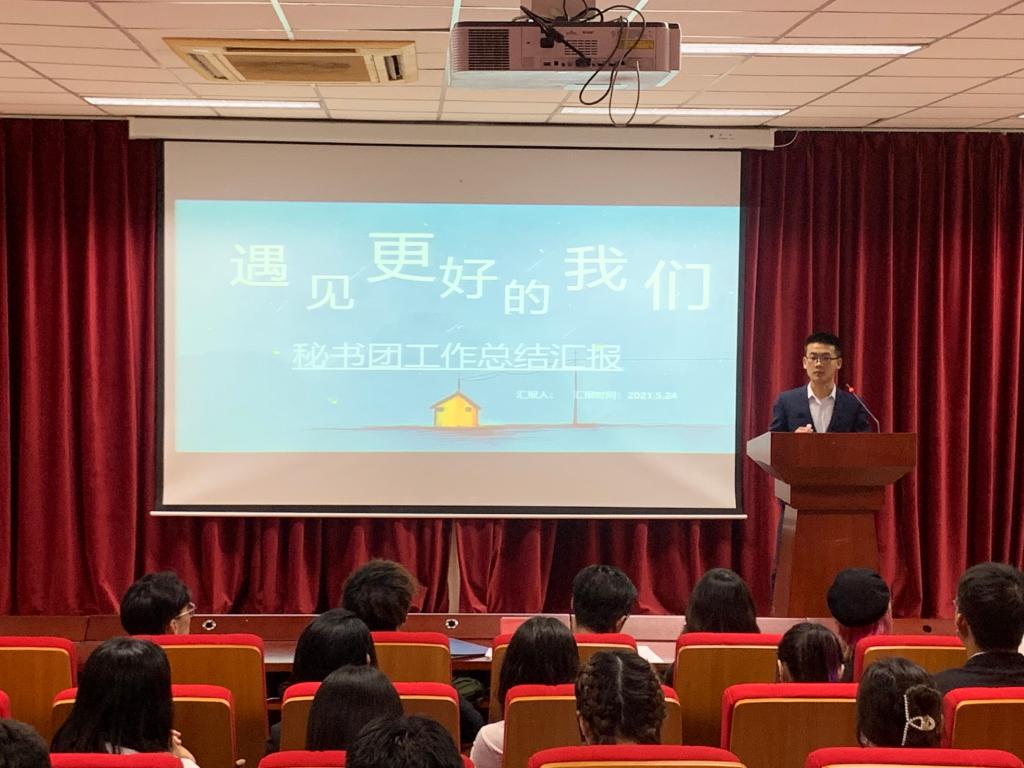 常务办公室、组织策划中心、外联权益中心、新媒体中心、科技创新中心以及秘书团部长依次进行总结汇报。从工作总结、成员介绍、优势成就以及未来展望等各个方面展示各部门于2020年在各方面工作的可观成绩,与此同时,各部长希望学生会成员加强沟通联系,定期反思总结,齐心协力让旅地学院学生会再创新辉煌。