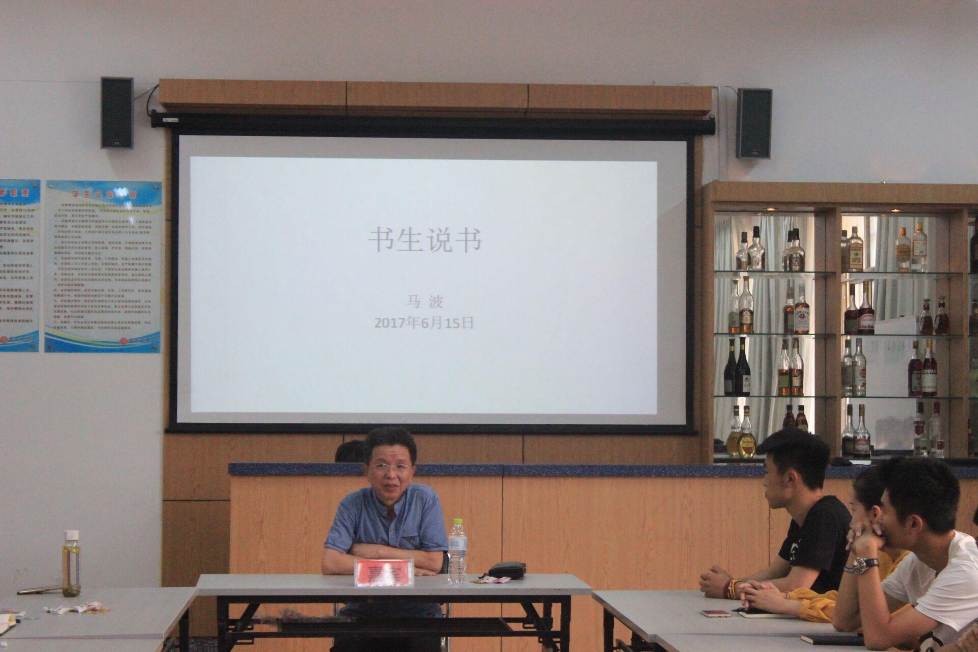 6月15日下午,由旅游与地理科学学院主办的以“听听名师谈读书”为主题的第一期读书交流会在taptap点点体育浮山校区酒店管理实验室举行。旅游与地理科学学院院长马波作为主讲嘉宾出席了本次活动,与15级和16级的同学一起进行读书的交流与分享。