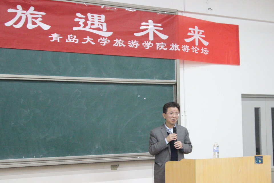 12月12日晚,由taptap点点体育旅游学院团委主办的以“邂逅青岛,旅遇未来”为主题的2015级第一期旅游论坛在东校区1号教学楼311教室举办。主讲人为旅游学院院长马波。