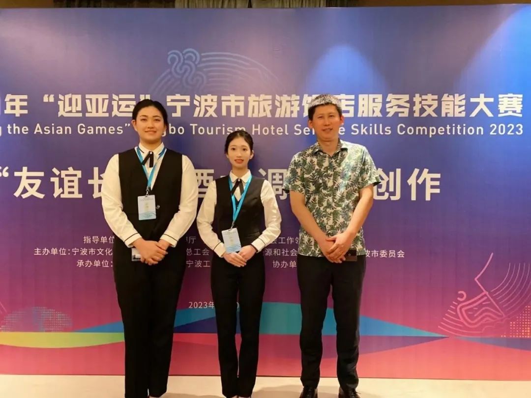 近日,以“迎亚运盛会,展行业风采”为主题,由宁波市文化广电旅游局、宁波市总工会、宁波市人力资源和社保局、共青团宁波市委共同主办,宁波市饭店业协会、宁波工人疗养院承办,宁波旅游学院协办的2023年宁波市旅游饭店服务技能大赛,在象山县的宁波工人疗养院举行。我院21级酒店管理专业矫洋洋、耿艺铭、姜珊在比赛中获得佳绩。