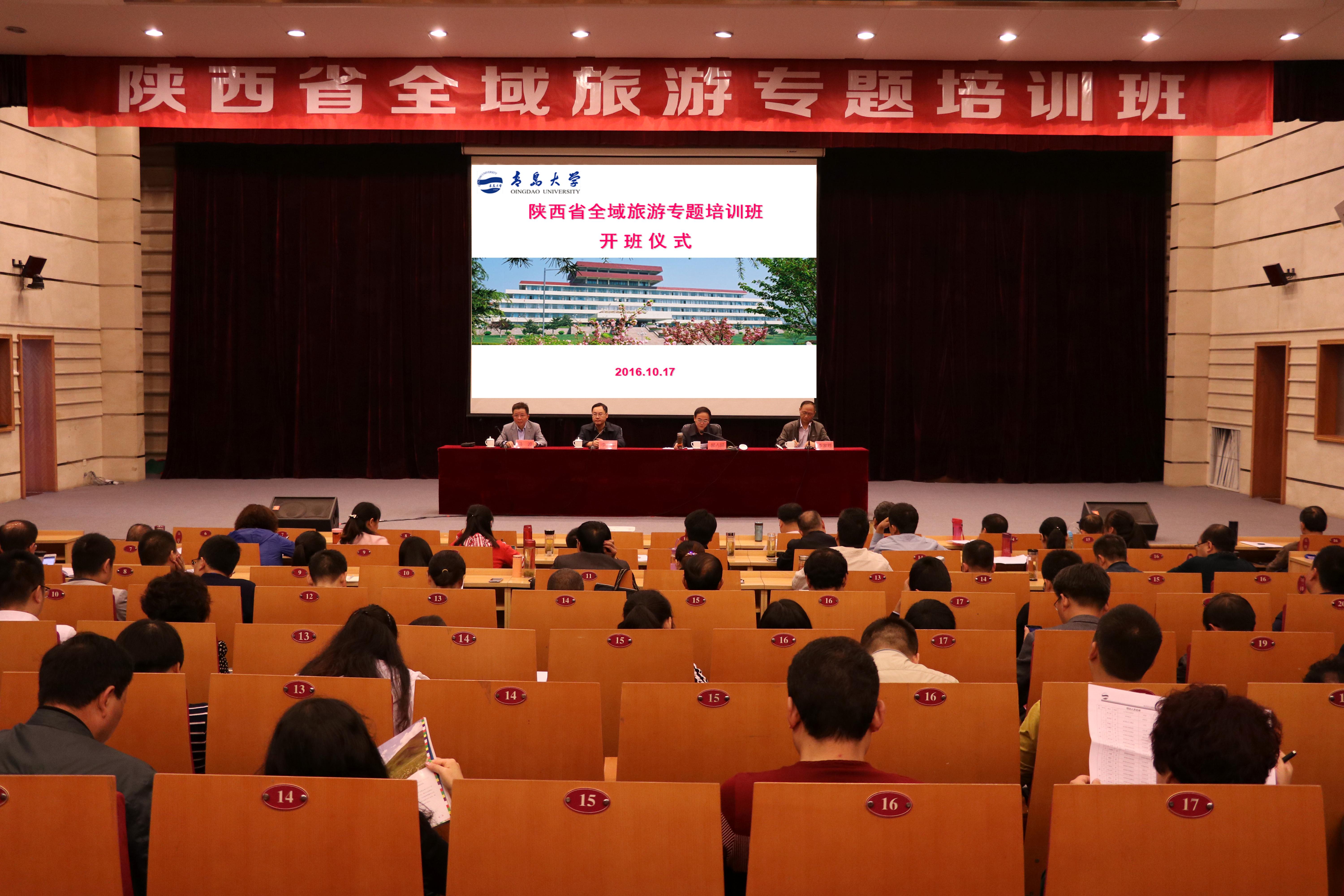 10月17日,由陕西省旅游局、西安市旅游局主办、taptap点点体育旅游与地理科学学院承办的“陕西省全域旅游专题培训班”在我校国际学术交流中心博学厅召开。我校李军副校长、陕西省旅游局副局长郝占廷、旅游与地理科学学院马波院长、陕西省旅游局人教处处长李家胜等出席开班仪式。来自陕西省旅游局、西安市旅游局的领导干部以及重点旅游企业负责人共计130余人参加此次培训。此次全域旅游专题培训班是陕西省旅游深入实施“百千万”旅游培训工程的培训内容之一。