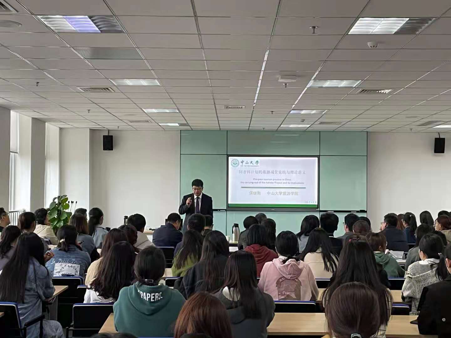 保继刚教授以“阿者科计划:旅游减贫实践与理论意义”为主题,介绍了“阿者科计划”背景和意义,并从股权与分红、村规民约、信息公开、扶志与扶智、项目影响力等方面详细介绍了“阿者科计划”这一具有中国特色的减贫实践。“阿者科计划”坚持“一个模式、两方参与、三个目标和四条底线”,将“尊重创造吸引物的社区”以及“不租、不售、不引进社会资本、不破坏传统”的原则贯穿于整个项目之中。在总结实践意义基础上,保继刚教授从“产权制度”、“pro-poor tourism”等方面进一步阐述了“阿者科计划”的理论反思。最后,保继刚教授强调“阿者科计划”模式的可复制性,并介绍了“阿者科计划”模式的输出计划。报告结束后,保继刚教授对与会的师生进行了深入互动交流。