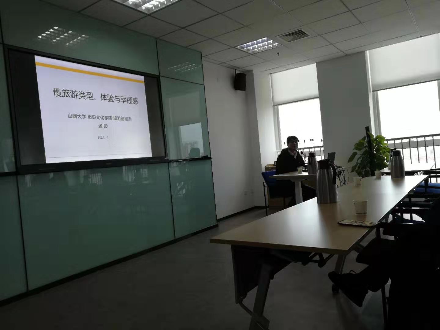孟波教授以“慢旅游类型、体验与幸福感”为主题,通过自身丰富的旅游历史学研究经验,分享了自己对“慢旅游”研究的灵感和来源,深入浅出的介绍了其中所蕴含的哲学思想,同时详细指出构成旅游体验感的指标、测算方法、研究范式以及相应的理论,系统的说明了如何将慢旅游的体验评价转化为幸福感评价,最后对高质量发展背景下的中国慢旅游的发展做出了展望。报告结束后,孟波教授对与会的师生就自己在科研工作中遇到的问题以及对本次报告中提出的疑问,都做了细致深入的解答,我院师生受益匪浅。