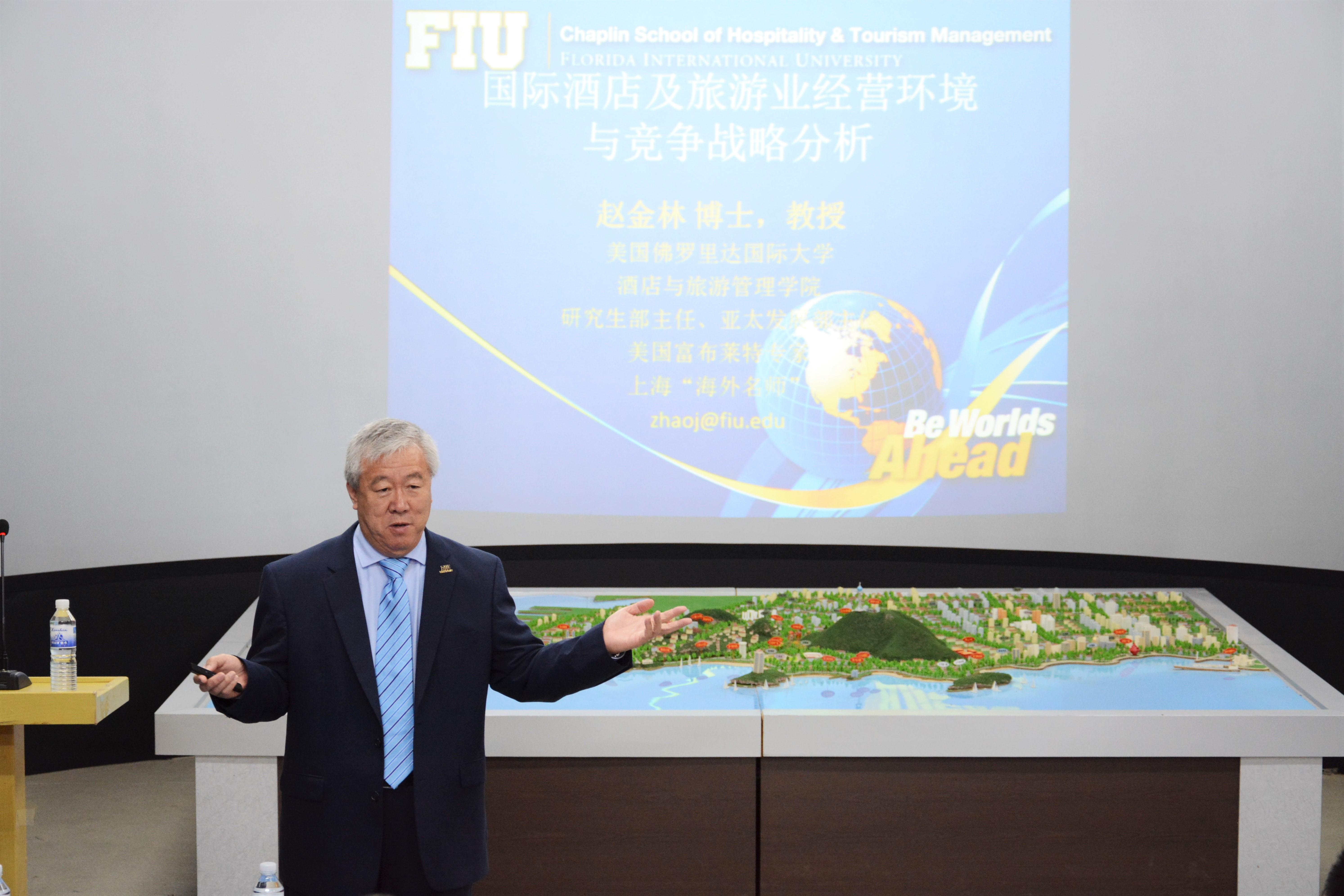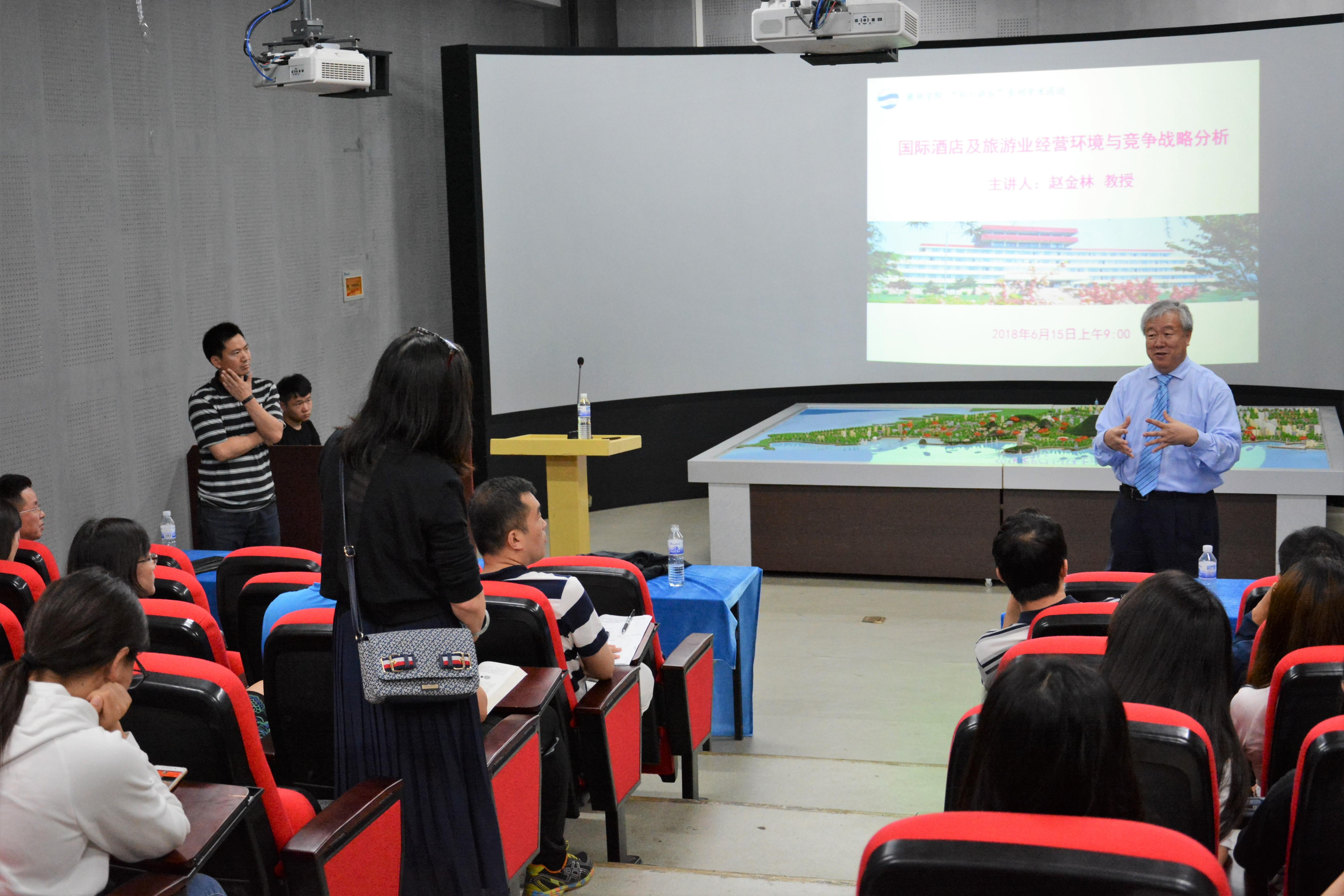 2018年6月15日上午9点,旅游与地理科学学院于taptap点点体育浮山校区静思楼2号旅游数字实验室举办“国际酒店及旅游业经营环境与竞争战略分析”学术交流会。本次交流会特邀美国佛罗里达州国际大学赵金林教授做学术报告,我院副院长张言庆主持本次交流会。