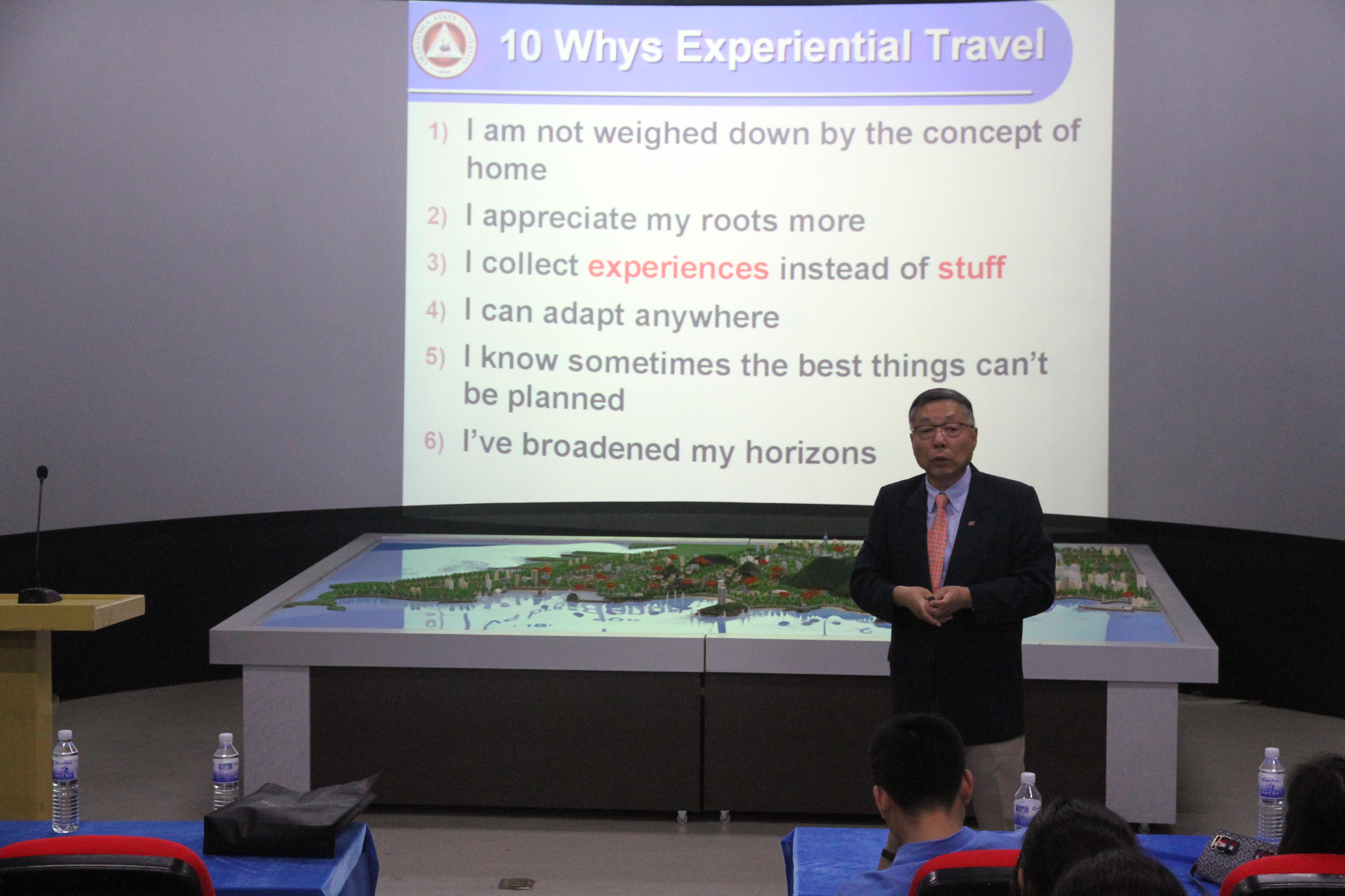 其次,他分析了X一代人和Y一代人,以及千禧一代的人的旅游新需求。他指出酒店业应该从客户体验方面入手,使他们灵魂和身体都能得到满足,同时要打造更有家的感觉的酒店。最后,他解答了同学们有关于读美国州立大学研究生、博士生的条件以及中美产业政策的差异等方面的问题。