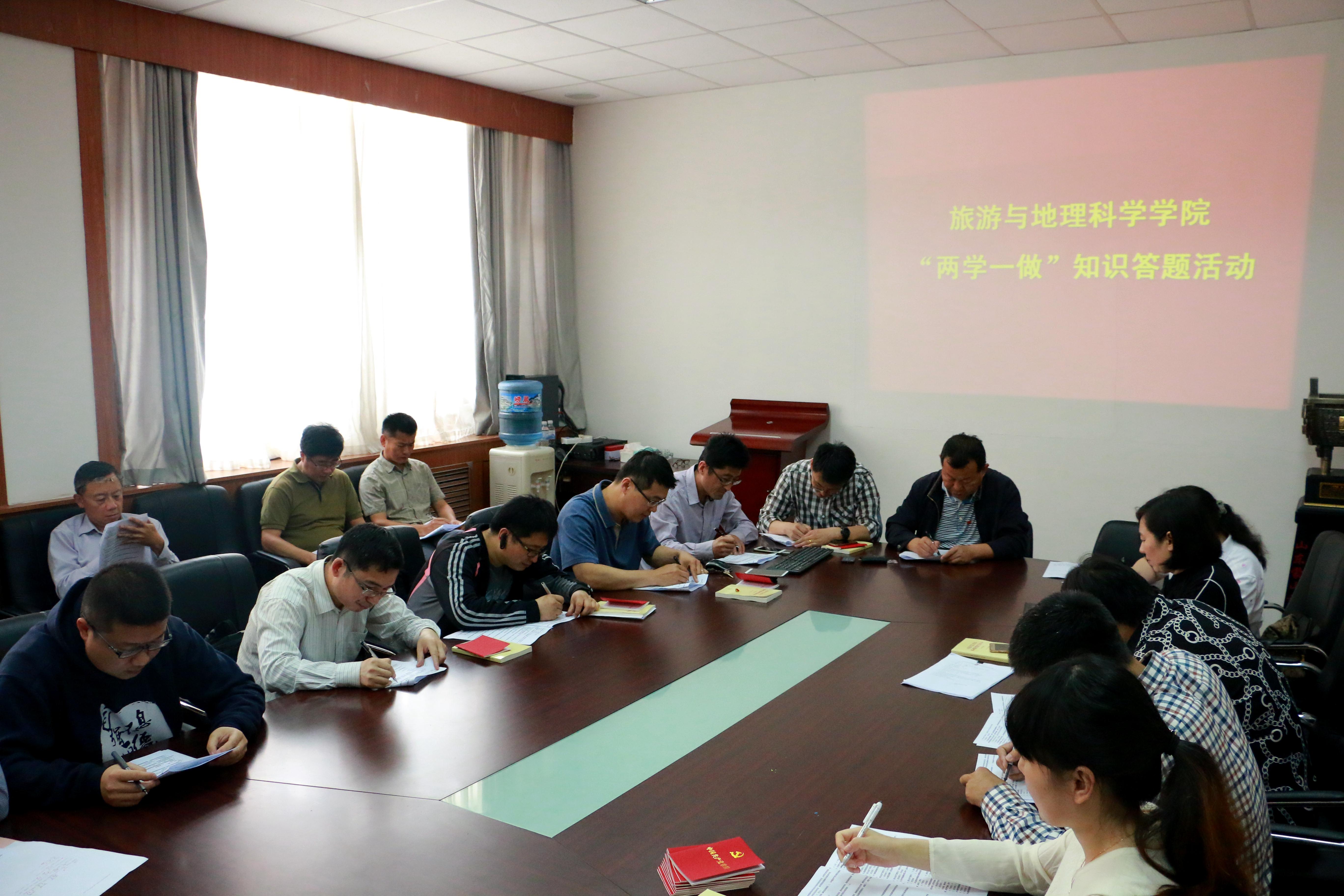 为扎实开展“学党章党规,学系列讲话,做合格党员”学习教育活动,营造良好的学习教育氛围。6月8日上午,旅游与地理科学学院在会议室进行了党章党规知识测试活动,全体教工党员和学生党员参加了此次测试。