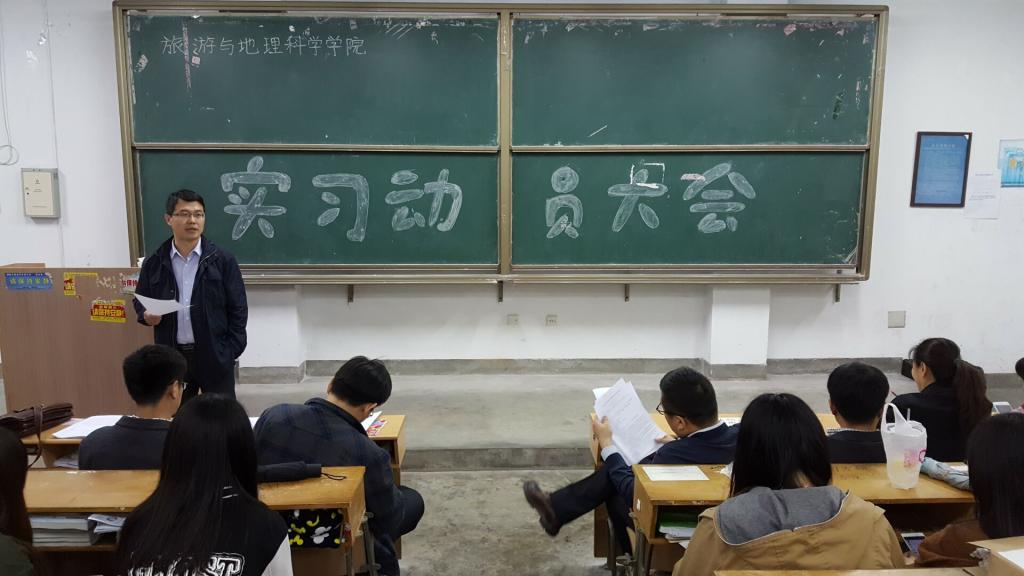 4月27日,我院2013级旅游管理专业实习动员会在中心校区学思楼二合教室举行。学院党委副书记孙志军,副院长耿庆汇,实习指导老师及13级旅游管理专业学生出席了此次动员会。