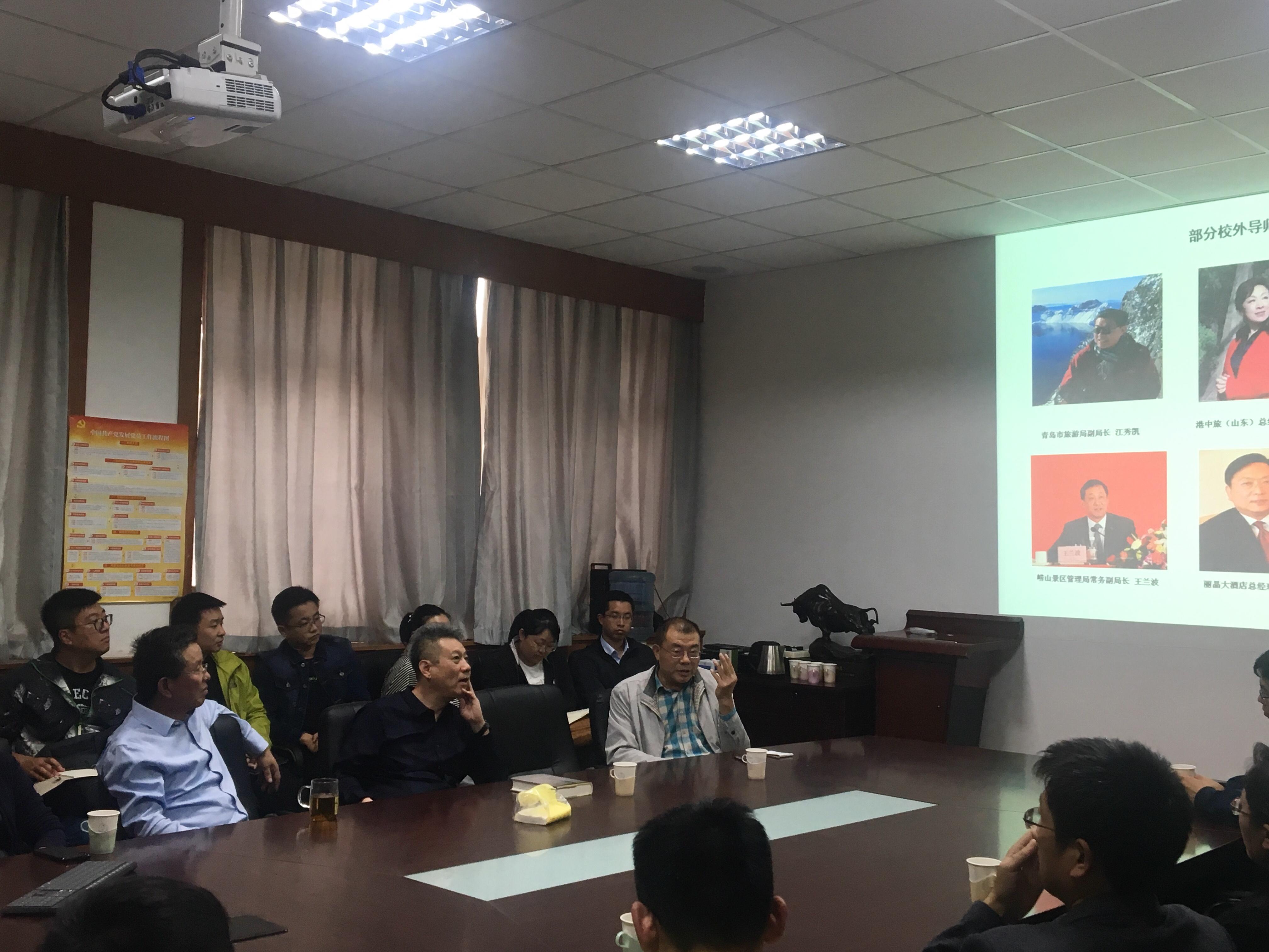 2018年10月14日下午2点,我院研究生与导师双选见面会在睿思楼122会议室顺利召开。出席本次会议的有马波教授、郭为教授、耿庆汇副教授、张言庆副教授、唐顺英副教授、钟行明讲师、李承哲讲师、港中旅国际(山东)旅行社有限公司田平总经理、山东老转村美食娱乐有限公司牛虎兵总经理及青岛市旅游局江秀凯副局长等研究生导师以及2018级硕士研究生,见面会由学院分管领导张言庆副院长主持。