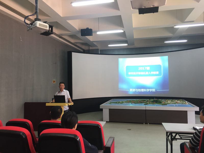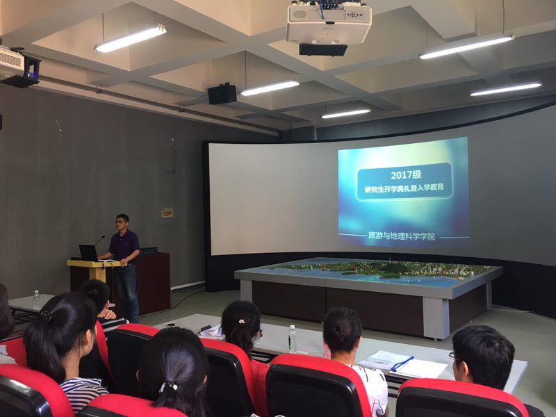 201799日下午两点,旅游与地理科学学院2017级研究生新生入学教育见面会在浮山校区旅游数字实验室举行。院长马波、党委副书记孙志军、副院长张言庆、团委书记韦辉、研究生教学秘书宋慧及2017级全体研究生参加了本次会议,本次会议由张言庆副院长主持。