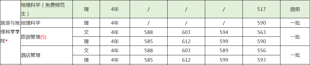 2016年、2015年、2014年、2013年本科一批线文科分别为530/568/579/570分;理科分别为537/562/572/554 分。